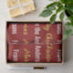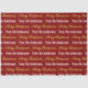 The tissue paper is deep red. It has a text pattern for a custom message such as Merry Christmas and the giver's name. Merry Christmas appears in an elegant faux (not foil) gold script. The other text is white. All of the text can be edited.