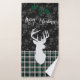 Merry Christmas Deer and Snowflakes - Green Plaid Bath Towel Set