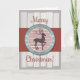 Pretty holiday greeting with round reindeer emblem and snowflakes along a rust red banner that runs width of card. Rustic white illustrated fence planks brighten up the background. A lovely way to wish your dentist a Merry Christmas.