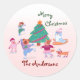 Merry Christmas Dog Ice Skating Name Pink Gift Classic Round Sticker