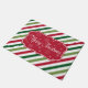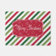 Merry Christmas illustration with text and snowflakes design on red, white and green striped background
