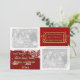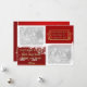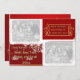 Festive red and gold 3 photo holiday photo card template- Customised photo greeting card with white scribble lines frames holiday photo templates for 3 favourite family photos insert. Add a family photo on the left front with white snowflakes under the family photo and custom text that reads from our home to yours holiday text template for family name, family members, and the holiday year. Any of the text may be changed of course. Merry Christmas and Best Wishes for a Happy New Year is printed on the right with a gold scrolls frame in gold glitter look letters with a black shadow to make the season's greeting stand out. Against a dark red background. Below that is space for another custom holiday photo. Coordinating red evergreen tree shadow background on the back, too, has another large Christmas photo template for a favourite Christmas photo. All-occasion winter design is great for many winter special occasions, not just Christmas greeting cards- Christmas caroling, Christmas party, winter party, and more. We also have this modern and bright holiday design on other office supplies and gifts. Just visit our online Zazzle shop for lots of other winter, holiday and Christmas designs. Upload your own family photos and enter your own personal information for personalised Christmas photo cards. Change the text colour, font style, or wording if you like.