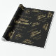 Merry Christmas Pattern Typography Elegant Chic Black and Gold Faux Gold Foil Text Glossy Gift Wrapping Paper Holiday Season Christmas Gifts, Add Name and/or Text