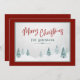 Elegant country holiday flat cards with "Merry Christmas" in red coloured, handwritten style calligraphy along with your personalised family name or names and the year in a blue spruce pine coloured, rustic style typography. An artistic scenic view of trees and winter snow highlights the front of the card accented in a pleasant, red & pine green frame. The back of the card, also in pine green, features a text space for your personal holiday message or can be left blank for you to handwrite one if needed. Available in high quality printed card stock for standard mailing or a downloadable, digital format for quick and easy sending via text message, email or even self print.