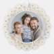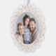 Stylish and elegant, scalloped holiday photo ornament card. These large ornaments also serve as greeting cards with editable text fields on front and back. This custom design features your personal photo on the front highlighted in a unique gradient frame and finished off with delicate snowflakes in faux gold colours on a chic white background. Happy Holidays, Merry Christmas or enter your own desired greeting. The perfect keepsake gift and décor for the holidays.