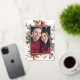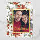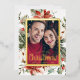 Merry Christmas Elegant Gold Foil Holiday Card. This elegant Christmas photo card features a beautiful frame of hand-painted watercolor greenery, flowers, and berries with a real gold frame and script. The back includes a whimsical pattern. Find matching items in the Christmas Holiday Poinsettia Collection.