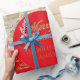 Merry Christmas Elegant Faux Gold Foil Script Golden Text Pattern on Poinsettia Background Holiday Season Glossy or Matte Gift Wrapping Paper, you can add name or text