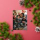 "Merry Christmas" in an elegant foil type treatment sits atop of a single vertical photo framed with a snowy foil speckle. This classic card is the perfect way to send Christmas greetings to friends and family. The back is a festive red speckled with a coordinating snowy pattern. The red colour can be changed by clicking "personalise" then "edit using design tool."