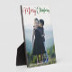 Elegant Merry Christmas photo plaque with beautiful cursive typography in red and green. This modern holiday family photograph gift features gorgeous script and your name in white over the full bleed picture.