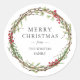 Merry Christmas Family Name Winter Greenery Classic Round Sticker