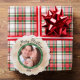 Add your own family photo to the front of this personalised paper ornament. A fun way to send your Christmas greetings to family and friends. Custom template you can change the date. faux wood slice texture.