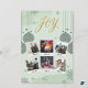 Send beautiful holiday greetings with these 7 photo collage Christmas cards! They feature five photo templates on the left of the card, with stylish, modern typography on the right, reading "Merry Christmas." This festive "We wish you a Merry Christmas!" holiday photo card design features a rustic chic winter scene from a Christmas tree farm that frames a favourite family portrait. Includes a snowy grey background with hanging string twinkle lights and fresh-cut green watercolor pine trees. Personalise with your choice of greeting, your family's last name, and the year. A coordinating pattern of little pine trees and a photo collage of 7 square pictures dresses up the back of the card.