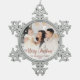 Merry Christmas Family Photo Rose Gold Script Snowflake Pewter Christmas Ornament