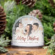 Merry Christmas Family Photo Rose Gold Script Snowglobe