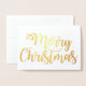 A stylish elegant bold typography script "Merry Christmas" design Holiday card with foil print on the front, and a personal message on the inside. To edit this design template, change the text in the field shown above. Click 'Customise' button to add images, customise fonts and colours.