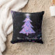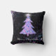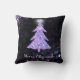 Merry Christmas glitter tree with star is an original graphic design. Pink blue and silver faux glitter Christmas tree, with bright white starburst at the top, on a black background with twinkling teal silver pink and purple light bursts. A sparkling holiday pillow. Great for the holiday season, or Christmas in July.