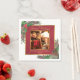 These festive napkins are perfect for all of your holiday gatherings. The beautiful hand painted watercolor design features your photo in a golden faux foil frame on a marbled crimson red background. The frame is surrounded by green holly leaves and red berries as well as pinecones, and pine branches. The caption reads Merry Christmas and there is space for your name or a short note.