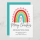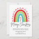 Merry Christmas Festive Rainbow Candy Cane Heart Christmas Cards features a fun and colourful whimsical rainbow around a candy cane and surrounded by pink love hearts. Below is the text Merry Christmas in modern black hand written script. Personalised with your own message and your family name by editing the text in the text box provided. View other items in this collection designed by Evco Holidays https://www.zazzle.com/store/evcoholidays