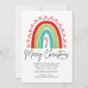 Merry Christmas Festive Rainbow Candy Cane Heart Christmas Cards features a fun and colourful whimsical rainbow around a candy cane and surrounded by pink love hearts. Below is the text Merry Christmas in modern black hand written script. Personalised with your own message and your family name by editing the text in the text box provided. View other items in this collection designed by Evco Holidays https://www.zazzle.com/store/evcoholidays