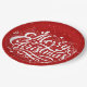 These classic red and white Christmas paper plates wishes everyone a "Merry Christmas" in a fun yet traditional script with stylish seasonal flourishes.