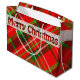 Merry Christmas Festive Tartan Pattern Red Green Large Gift Bag