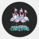 Merry Christmas Flamingo Squad Trocal Style Classic Round Sticker