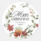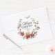 Merry Christmas Floral Wreath Family Name Classic Round Sticker
