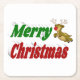 Merry Christmas Flying Reindeer typography Square Paper Coaster