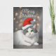 Merry Christmas For Anyone Cute Cat in Santa Hat Holiday Card