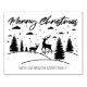 This "Merry Christmas" rubber stamp features deers, trees, a message and a custom family name.