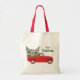 Merry Christmas French Bulldogs Red Pickup Truck Tote Bag