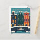 Send a festive and modern greeting with this flat-design travel postcard. Features the iconic Amsterdam canal houses and bridge decorated with Christmas lights under a snowy sky. Perfect for sending unique holiday wishes and celebrating the spirit of a Dutch Christmas. A stylish, minimalist illustration for collectors and travelers.