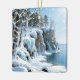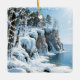 A pretty personalized Christmas ornament with an illustration of Door County in the wintertime. The pretty dune ledges covered in icicles and frozen blue ice, blue water of Lake Michigan hitting against the bluffs, Sun shining lighting up the sparkling snow and ice. And pretty Christmas lights twinkling in the trees on the bluffs. There is a winter poem on the back.