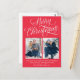 elegant merry christmas fun script 2 photos red and white holiday Postcard