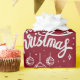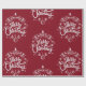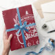 Festive scripted we wish you a Merry Christmas white typography on red paper with ornaments and stars wrapping paper.