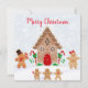 Let us wish you a great holiday season! A Merry Christmas gingerbread invitation for your Christmas party, decorated with a gingerbread house, gingerbread, and cookies. White snowflakes on a white backdrop, gingerbread men, and a gingerbread home filled with sweets and candy canes.