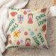 Merry christmas text girly pink background with present and colourful ornaments throw pillow. Girly christmas home decor for kids.