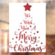 Merry Christmas glitter red Window Cling, Cute Christmas with Red berries colour, traditional Christmas design. glitter red frame. Fancy swirly cursive handwritten Merry Christmas.