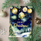 Merry Christmas holiday greeting card silver gold baubles Christmas tree starry night watercolor template invitation instant digital download, pine branches with silvergold baubles snowflakes