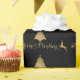 A Shining Christmas Wrapping paper with a lovely typography text "Merry Christmas" in faux gold with a Christmas Tree and a reindeer on a black background. Beautiful and elegant designs to make a joyful gift wrapping this holiday season.