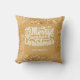 Elegant gold "Merry Christmas" decorator pillow personalised with your family name.
