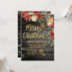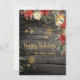 A classy and elegant holiday Christmas card on one-sided 5 by 7 inch semi gloss card stock. A classic reclaimed wood rustic barn board background with holiday red florals and evergreen greenery with shimmering gold handwritten calligraphy and a sprinkle of delicate snowflakes, wishing your recipients a joyful holiday and happy new year. The back of the card says Happy Holiday with your family name.