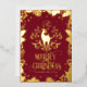 Merry Christmas Gold Deer Holly Family Photo Foil Holiday Card