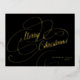 Merry Christmas gold foil script classic black Foil Holiday Postcard