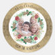 Merry Christmas Gold Foil Watercolor Wreath Photo Classic Round Sticker