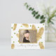 A modern and trendy Christmas Holiday illustration with gold fir branches and green glitter dots on the background with lovely Typography Script letters "Merry Christmas". Easily to change the sample photo with your own one.