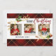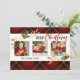 Merry Christmas Gold Leaves 3-Photo Red Tartan Holiday Card