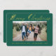 Merry Christmas Gold Leaves Typography Green Photo Holiday Card