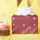 Elegant script font, designer colours, "Merry Christmas" in varying shades of gold for a gradient gleam effect on the letters, medium wine red or burgundy hue background colour, and a plethora of happy Christmas stars. This a popular colour of red this Christmas but you can change it if you like by using the customise feature (and of course gold never goes out of style!). Gold, yellow, orange and golden shades can represent warmth, optimism, fire, the Sun, generosity, nurturing, spiritual and material riches, happiness and good cheer. Merry Christmas to you and yours!