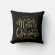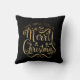 Merry Christmas Gold Typography Black Chic Cushion